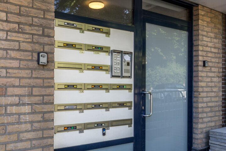 aan de voorzijde van dit gebouw is de centrale ingang. hier bevinden zich de brievenbussen en het bellentableau. aan de achterzijde is een parkeerplaats voor alle appartementen aanwezig. per appartement is er 1 parkeerplaats. de parkeerplaats is afgesloten en middels een elektrisch bedienbare poort met afstandsbediening bereikbaar.
